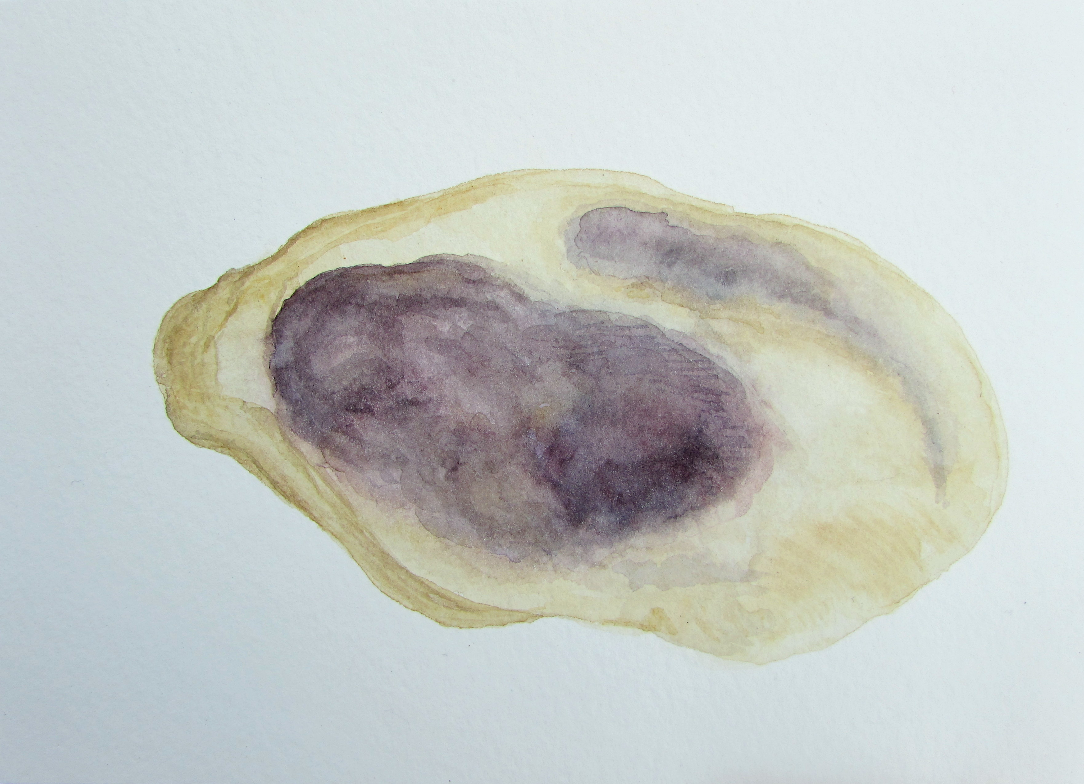 Oyster shell study Watercolor OYSTER SHELL STUDY, 2016 Watercolor on paper, 5″x7″ The inside of an oyster shell reminds me very much of the bleeding effect characteristic of watercolors. Related