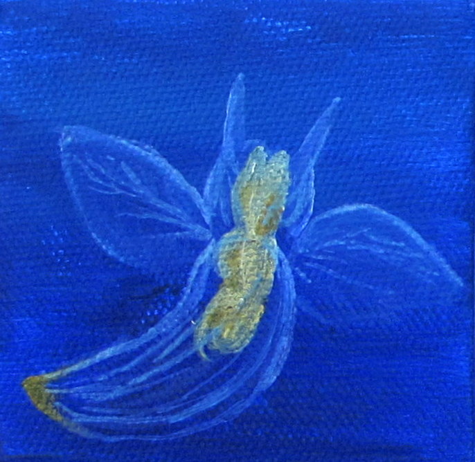 SEA ANGEL, 2016 Acrylic on canvas, 3″x3″Found throughout the world, I first encountered these very tiny and very cute sea creatures in an aquarium display in Mie, Japan.