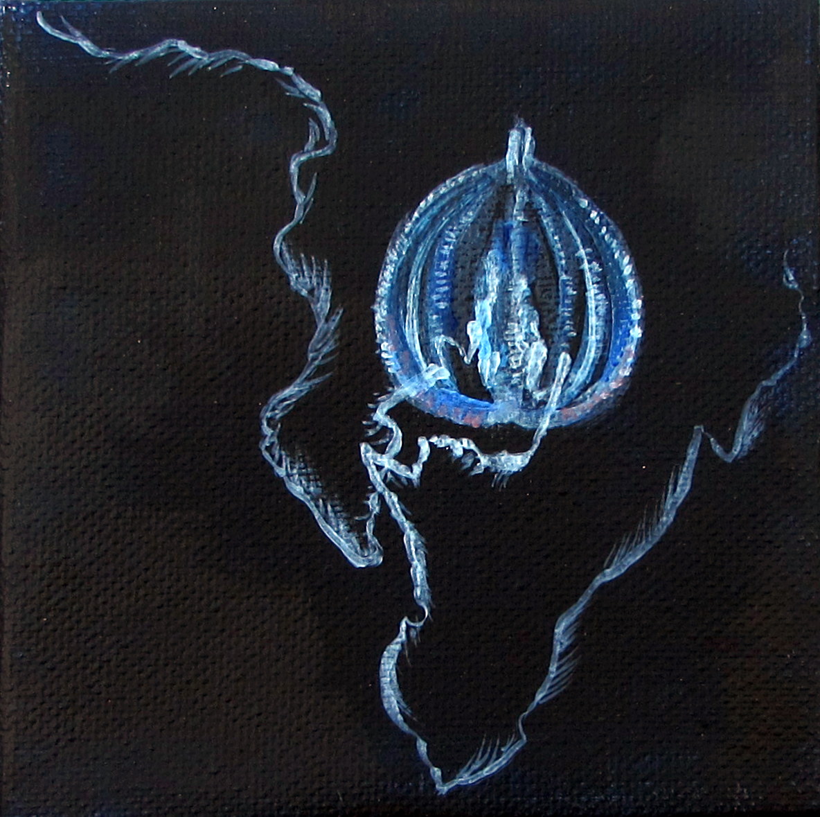 SEA GOOSEBERRY, 2016 Acrylic on canvas, 4″x4″ A very interesting-looking relative of the equally harmless comb jelly.